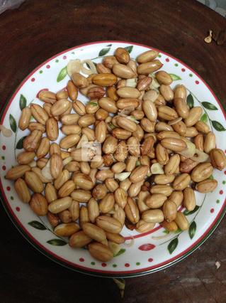 主料:花生米(350克)辅料盐(10克)蒜(25克) 香叶(2片)大料(5瓣) 桂皮(1小块) 花椒(20粒)
