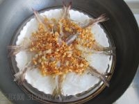 5、剖开后去掉虾线,然后用刀在虾肉上纵横各划几刀,以免蒸时打卷。