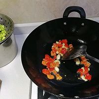 小葱切段,蒜切片,红椒切粒,喜欢吃辣放小米椒,鸡蛋打散备用。