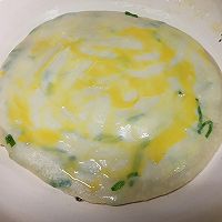 平底锅底刷一层油,放入烙饼的生坯,中小火烙,表面刷一层蛋液。