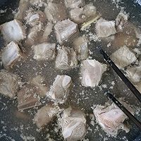加料酒和姜片,焯水三五分钟,去除腥味和血水