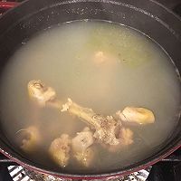 再放入姜片、胡萝卜、香菇放入高汤转小火煮半小时,让汤更香,捞出汤渣不要。