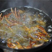用手摇晃下锅,使鸡爪能均匀泡在油里。等锅里不再爆油时,揭开盖子,炸至皮紧发硬出纹