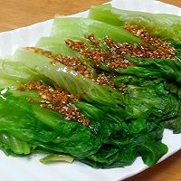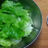 锅里加1000毫升水烧开,把生菜放入开水中抄一下,这个过程根据个人喜欢,想吃爽脆的抄20秒钟就可出锅,因为生菜本来就可生吃的。我怕生吃不太干净,抄水一分钟,所以有点熟过了。捞出来装盘。
