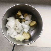 把洋葱切大块,用清水泡一下,去一下洋葱的辣味