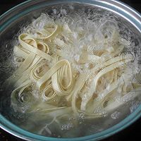 锅中水烧开后,放入豆皮丝焯水后捞出沥干