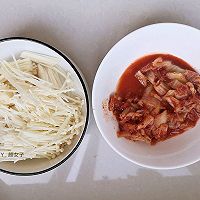 金针菇200克、辣泡菜150克、嫩豆腐200克、色拉油10克、葱1根、盐3克、辣椒酱1勺、清水300ml