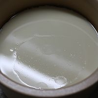 再把豆浆沿着内胆壁倒入,用筷子稍微搅拌2、3下即可