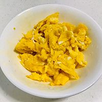 鸡蛋放盐打散,平底锅放油加热炒鸡蛋