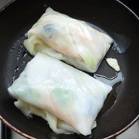 热一平底锅,下橄榄烧热,把粉包收口朝下煎至蛋熟