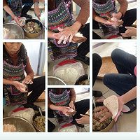 炒馅料好后,把它们和在煮好的糯米饭上,搅拌均匀,像图中这样。