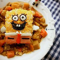 将海绵宝宝轻轻地摆放在咖喱饭中间,造当修饰一下海绵宝宝。开动吧!宝贝们!