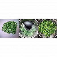 蒸窝窝头的时候就可以做配菜了,豆角去两头根茎,切粒。烧一锅水,加一点油和盐,放入豆角焯熟,过凉水后沥干