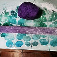 紫薯隔水蒸熟、去皮、装入食品袋子里用擀面杖捣碎成泥。