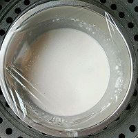 将搅拌好的粉糊加盖保鲜膜,上锅隔水蒸25分钟。