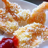 鸡蛋1个、番茄酱1勺、黑胡椒粉少许、盐1克、对虾15只、面包糠2大匙、玉米淀粉1大匙、料酒1勺