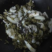 食材: 乌贼2个、雪菜1棵、料酒两勺、水适量 步骤1: 雪菜洗净切碎备用 步骤2: 乌贼细节切块备用 步骤3: 热锅倒油放入雪菜炒香(1分钟左右) 步骤4: 再放入乌贼翻炒变色加入料酒 步骤5: 然后再倒入适量的水大火煮开加盖小火慢煮至八成干(我没放盐.因为雪菜是咸的.这样煮出来咸淡刚好) 步骤6: 出锅??