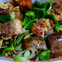 (明太鱼)鳕鱼2条、青椒1个、葱沫适量、姜末适量、盐适量、香辣豆豉酱适量、老抽适量、白糖1小勺、料酒适量、胡椒粉适量、淀粉适量