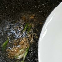 炒锅放油,放姜丝,葱段炝锅,放虾皮煸炒一下。