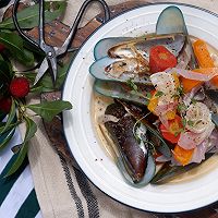 青口贝几支、奶油适量、洋葱1个、胡萝卜2根、水果辣椒适量、黑胡椒适量、海盐适量、黄油10克