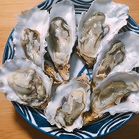 →最后,我用刀一个个地把生蚝肉和壳轻轻分离,用清水冲洗干净,摆盘如图。待都清洗完毕,把先清洗好的生蚝里渗的水一个个倒了。