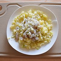 把碎虾放入土豆泥中