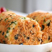 均匀的撒上白芝麻,小香葱,海苔肉松,入炉烘烤,170度18--20分钟左右,看上色。