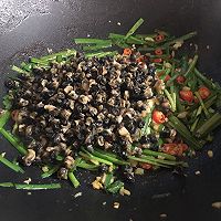 继续倒入韭菜,翻炒至韭菜段颜色变深;