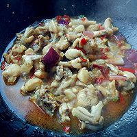 加入盐、料酒、生抽、糖、姜粉、胡椒粉、辣椒粉和牛蛙,大火翻炒