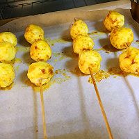 中途拿出丸子再刷一下咖喱顺便帮丸子翻个身,让它均匀受热。
