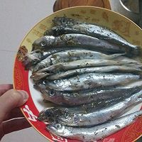 食材: 多春鱼十六条、盐适量、普罗旺斯风味香料适量、柠檬适量、料酒适量 步骤1: 新鲜多春鱼洗洗~ 步骤2: 把多春鱼腮扯出来,我还以为很难,结果把腮一扯出来肠子也出来了~真的棒棒哒简单~ 步骤3: 用香料料酒盐腌上~二十分钟最好哈。最后加点淀粉沾一沾~煎好最棒~ 步骤4: 成品~煎好后的样子~