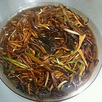 黄髫丝500g(活称重量)、茭白2根、小葱1把、生姜适量、蒜头半个、料酒2大匙、老抽酱油1大匙、生抽酱油1大匙、盐1小匙、鸡精1/2小匙、白砂糖1大匙(北方人少放一些)、水1大匙、白胡椒粉1小匙、洋葱半个
