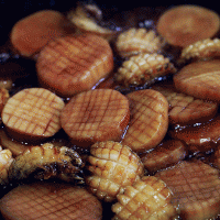 鲍鱼10只、杏鲍菇2根、冰糖适量、生抽+料酒+蚝油各1汤匙、姜丝少许