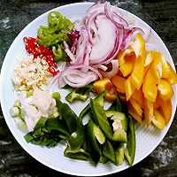 备辅料:洋葱、青红辣椒、彩椒、葱、姜蒜
