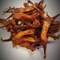 食材: 鸭舌适量、李锦记卤水汁200ml、水600ml、干红辣椒适量、八角3枚、冰糖适量 步骤1: 平底锅小火加热,将洗干净的鸭舌平铺在锅内,水分略微受干后翻面,重复三次后装盘备用。 步骤3: 将沥水后的鸭舌放入卤水中,大火煮沸后转小火,5分钟后关火,焖制15分钟后取出。
