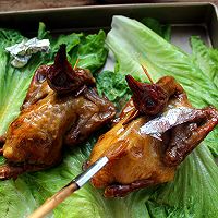 重新摆在烤盘上,刷一层之前腌乳鸽的料。