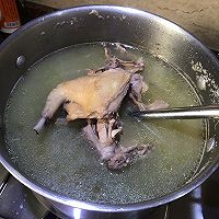 老鸽清洗干净,冷水下锅,放入姜片煮出血沫