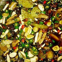 准备食材:鸭爪30个、生姜1块、料酒100ml、香叶3g、花椒3g、八角5g、腌制食材:香叶15g、八角30g、大蒜3个、小米辣30个、红线椒10个、野山椒水500g、六月鲜生抽300g、李锦记老抽500ml、糟卤2包、白糖200g、大葱半根、白醋300g