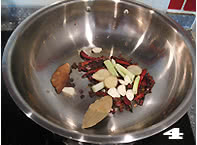 炒锅加热,倒入少许食用油,放入花椒和掰成小段的干辣椒炒香,再加入葱姜蒜香叶炒香。
