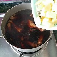 土豆250克、胡萝卜80克、鸭翅根600克、姜片4片、八角2瓣、桂皮2小块、花椒40粒、料酒少许、鱼露少许、蚝油少许、老抽适量、食盐3小勺、味精少许、老冰糖1小碟