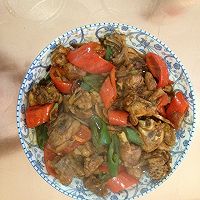 第三步,出锅前,把青红椒倒入,炒制变软色,就可以起锅上菜了。简单的很,而且还能拿得出手。