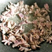 炒锅放油宽一点,倒入鸡胗。