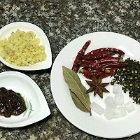 佐料准备:姜末、豆瓣酱1汤勺、香叶2片、花椒适量、干辣椒适量(吃不了太辣就少放)、冰糖适量