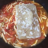 番茄炒出汁后加牛骨汤,牛骨汤提前解冻化开,我这里直接煮面用的汤多可先加一点水,牛骨汤块直接放番茄里煮开