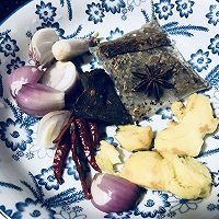 生抽约1勺、老抽约2勺、糖半勺(3克)、盐1勺(5克)、白酒1勺(10ml)、桂皮1段(4cm)、红葱头2个、姜3块、任意品牌卤料包1、陈皮1小块、干红椒2-3个、牛腱子(可以加牛窝骨一起也是极好的)约2000G