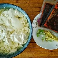葱切片,姜切丝,再准备一份豆花,辣火锅底料