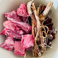 龙骨加一勺盐清水浸泡半个小时,因不焯水所以加盐清水浸泡出血水。
