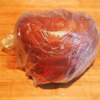 压好形状的肘子已经彻底冷却,放入冰箱冷藏一夜。