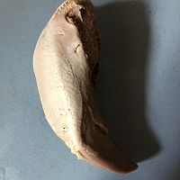 用刀或者指甲把猪舌的白色舌苔刮去。
