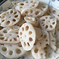 当剩余少许汤汁时再烩入莲藕片,放盐焖5分钟。